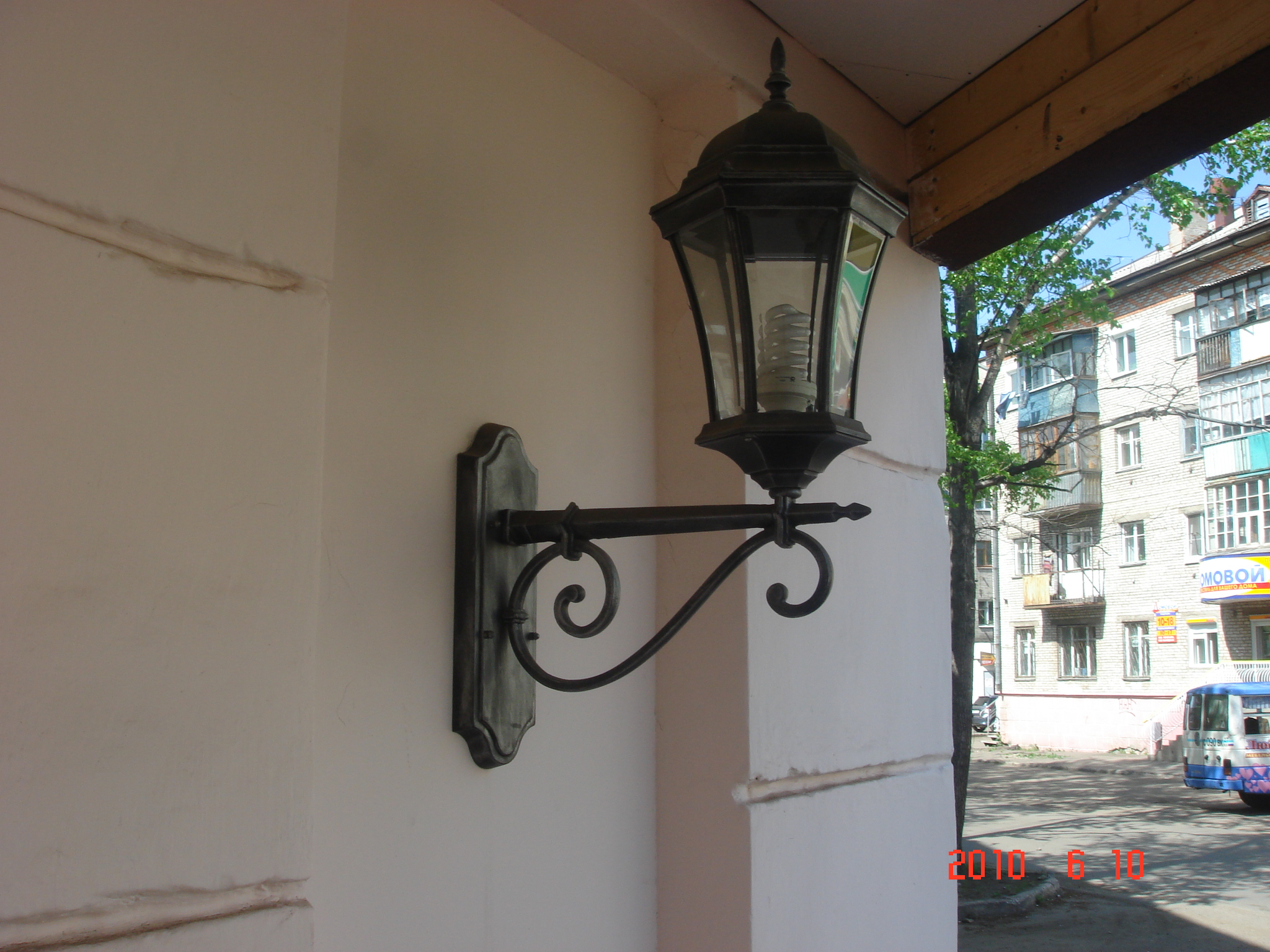 - вход в дом - уличные фонари с кронштейнами, вмонтированными на стенах;