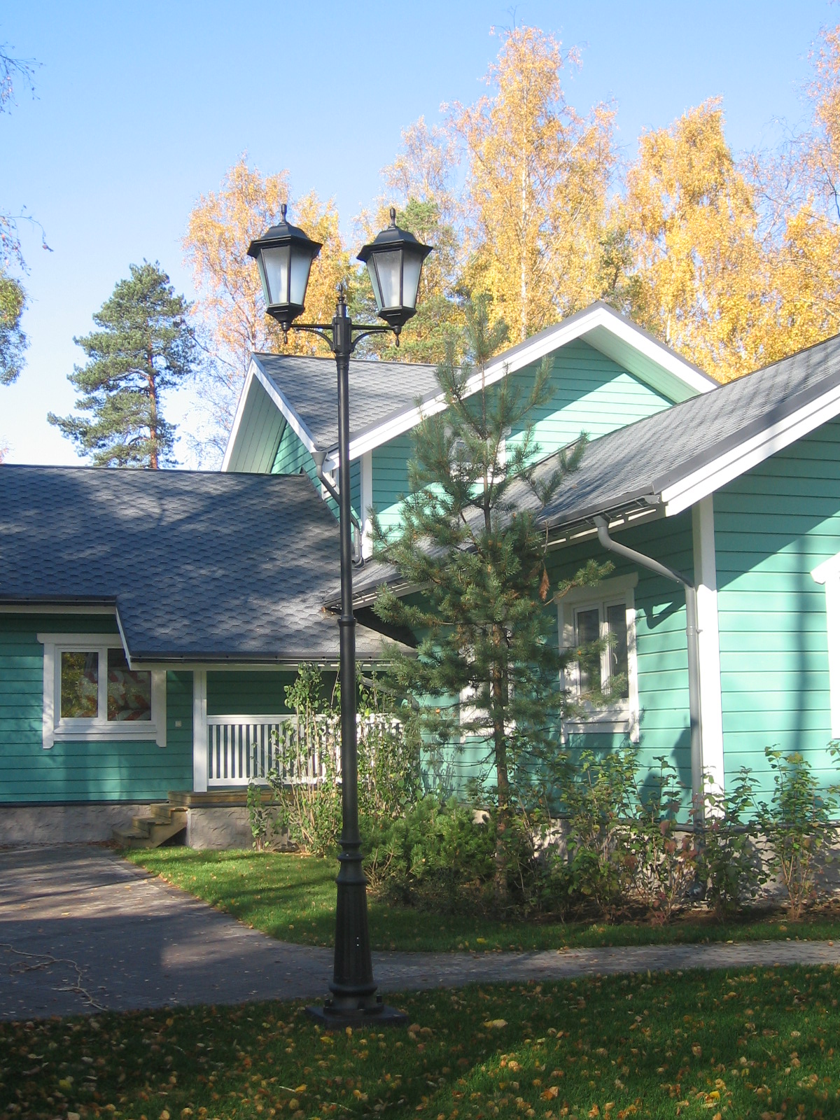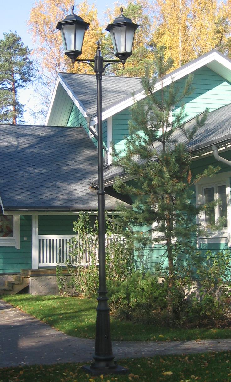 - Классические и современные торшерного типа. Применяются для освещения улиц, парков и пр. Такие светильники наружного освещения могут быть установлены на опорах или кронштейнах. Корпусы светильников изготавливаются из алюминиевого сплава. В зависимости от моделей, источником света может быть: газоразрядная лампа (до 400 Вт), ртутная лампа, компактная люминесцентная лампа или лампа накаливания.