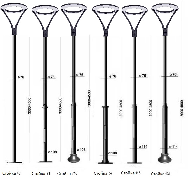 Светильник Стрит 7005 крепится на столб D=76мм. Вы можете приобрести светильник как в комплекте со стальной ногой, так и отдельно голову.